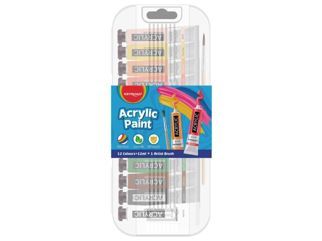 Akrylové farby KEYROAD, 12 x 12 ml, mix farieb