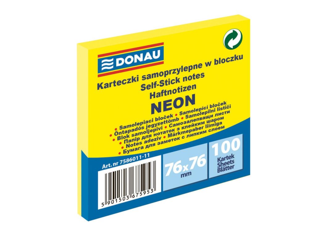 Bloček Donau neónový, 76 x 76 mm, žltý, 100 lístkov