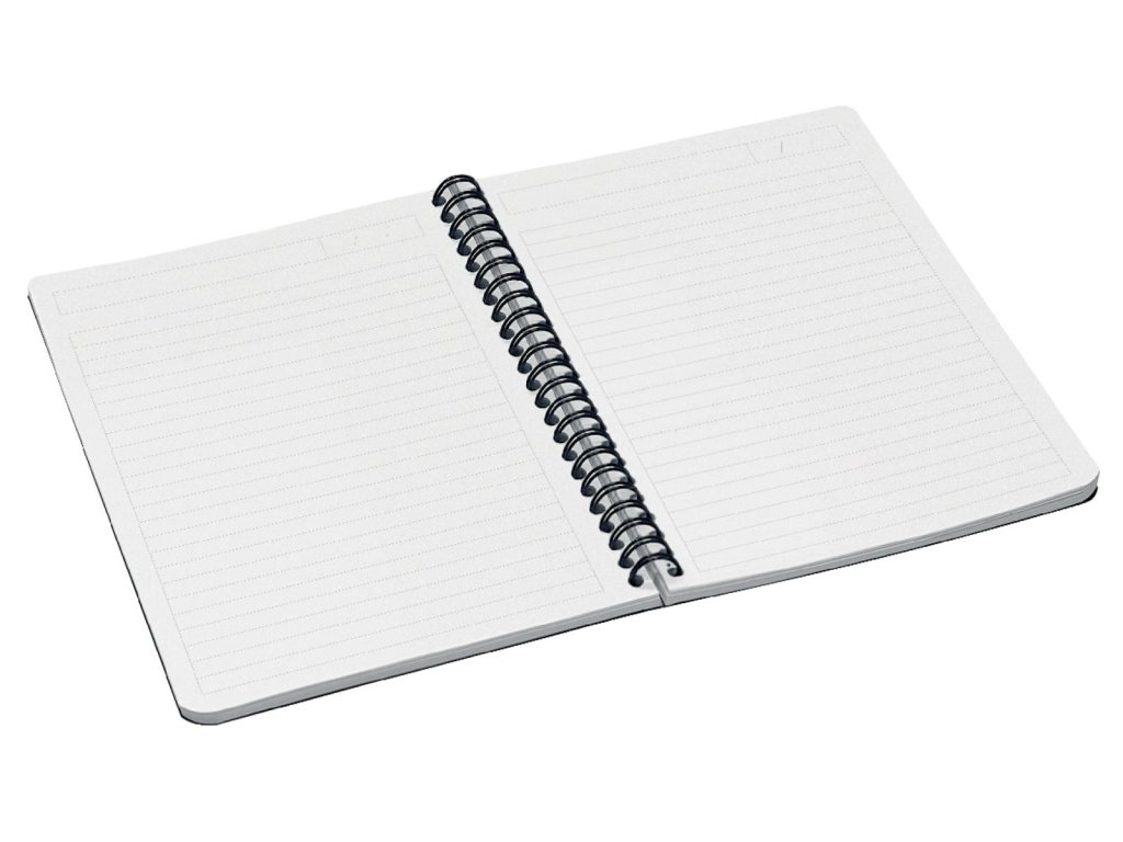 -Drôtená väzba umožňuje otvorenie poznámkového bloku v rozsahu 360 stupňov, prehnutý na polovicu môže poslúžiť ako podložka na písanie poznámok na cestách.