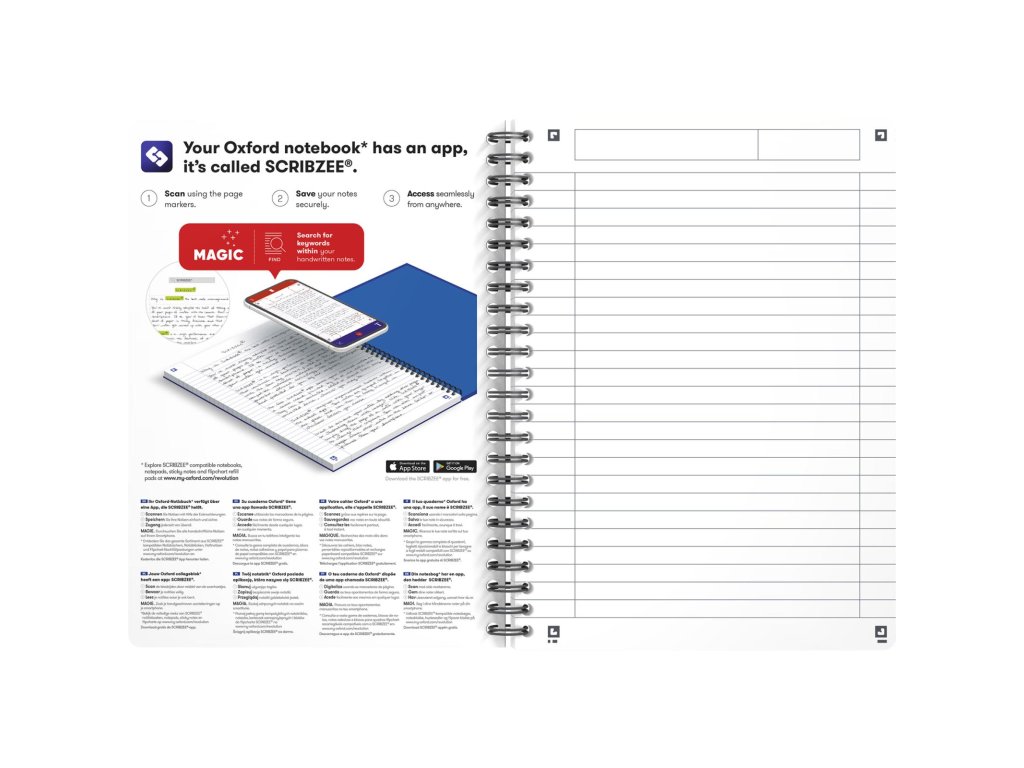 Blok s dvojitou špirálou, ktorá zabezpečuje otváranie strán o 360 °. Kompatibilný so SCRIBZEE. Listy s dierovaním, 6 mm linkovanie so záhlavím. Dosky z mäkkého, odolného laminovaného kartónu. Extra jemný a hladký papier Optik gramáže 90 g/m², u ktorého nedochádza k presakovaniu atramentu na druhú stranu. Vnútorné a vonkajšie okraje. Dodávané v mixe farieb. Formát A5. 90 listov. Úprava linajková.Dodatočné parametre