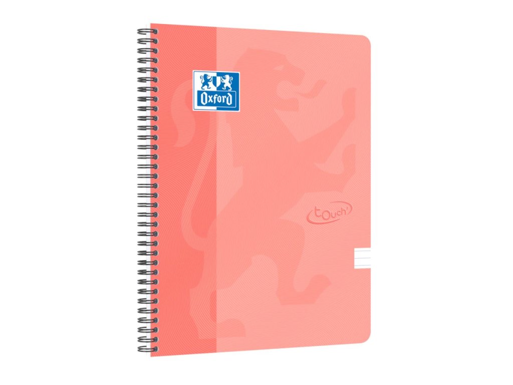 Blok špirálový Oxford Nordic Touch A4+/70 listov linajkový, lososový na dvojitej čiernej špirále, dosky z tvrdého kartónu so soft touch povrchom, kompatibilný so SCRIBZEE, biely, dokonale hladký papier Optik Paper+, neprepíja, cert. EÚ Ecolabel.Dodatočné parametre