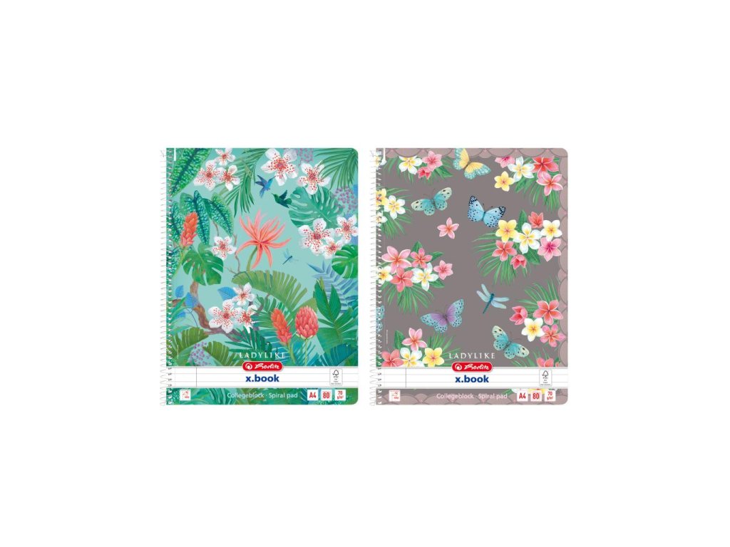 Poznámkový blok Ladylike, 80 listov, úprava linajková s okrajom, 70 g/m², jednoduchá, resp. dvojitá špirála, perforácia, zaoblené rohy, mix motívov Jungle a motýle.Dodatočné parametre