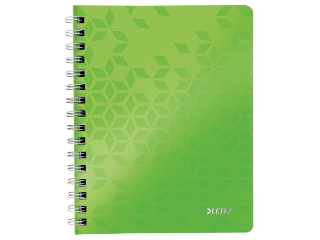 Krúžkový blok z dizajnovej rady Leitz WOW formátu A5 v žiarivých farbách. Vo vnútri biely papier s hmotnosťou 80 g / m2 s FSC® certifikáciou. Stránky sú perforované pre ľahšie odtrhávanie jednotlivých listov. Dvojitá drôtená krúžková väzba uľahčuje pretáčanie listov a zaisťuje dlhú životnosť bloku. Blok s pružnými doskami z polypropylénu obsahuje odnímateľné pravítko a vnútorné vrecko na uloženie voľných papierov, Väčšie balenie 6 ks. Farba metalická zelená.Úprava: linajková