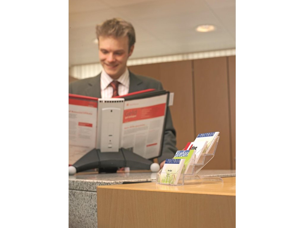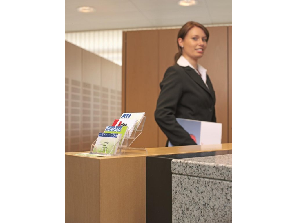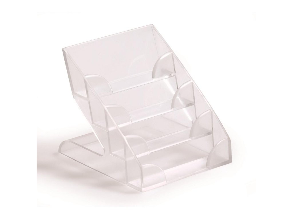 Priehľadný box z plastu so 4 rovnocennými priehradkami na skladovanie vizitiek. Kapacita 240 vizitiek. Možnosť spájania viacerých boxov pomocou spájacieho prvku. Farba číra.Kapacita: 240 vizitiek