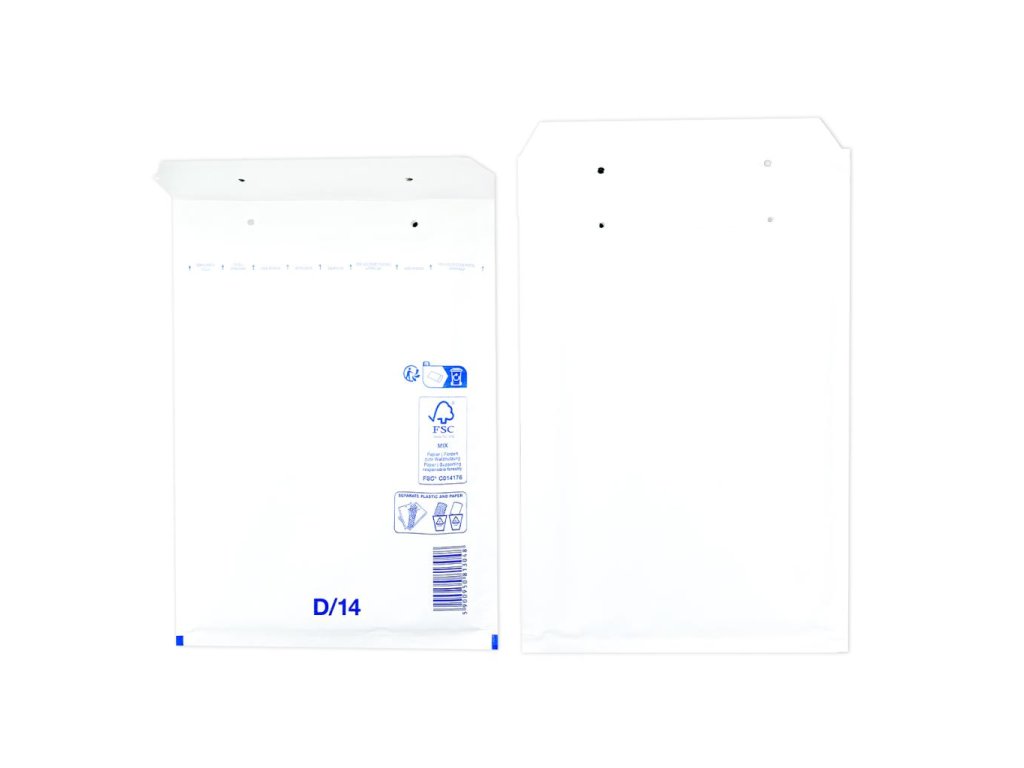 Extrémne ľahké, bezpečné a hospodárne obálky. Jednoduchý spôsob balenia samolepiacim uzáverom. Vďaka špeciálnej fólii s vankúšikmi, plnenými vzduchom a papieru Kraft, potiahnutému polyetylénom, sú obálky elastické a odolné voči roztrhnutiu a vode. Farba biela. Vnútorný rozmer 18 x 26,5 cm.Kód : D14