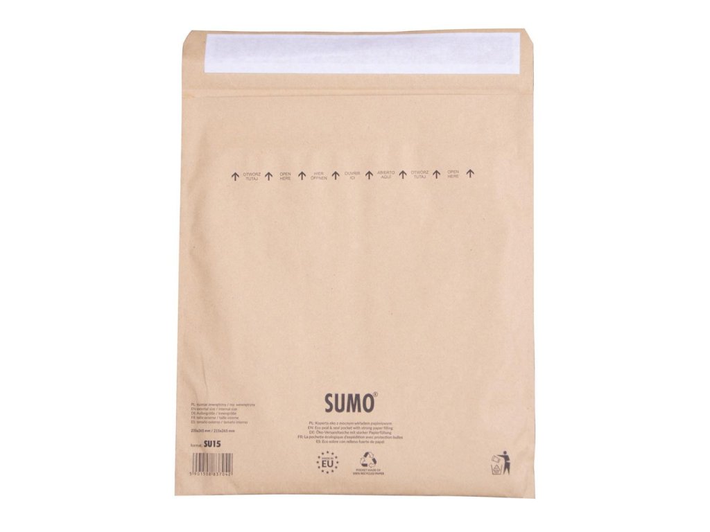 Obálky vhodné na ekologické odosielanie obsahu citlivého na otrasy. Vyrobené bez použitia plastov ako výplňového materiálu a pozostávajú zo 100 % recyklovaného papiera. Neobsahujú žiadne optické zjasňovače a preto si zachovávajú charakteristický hnedý recyklovaný odtieň. Samolepiace, s odtrhávacou páskou. Hmotnosť 90 g/m. Balenie 50 ks.Dodatočné parametre