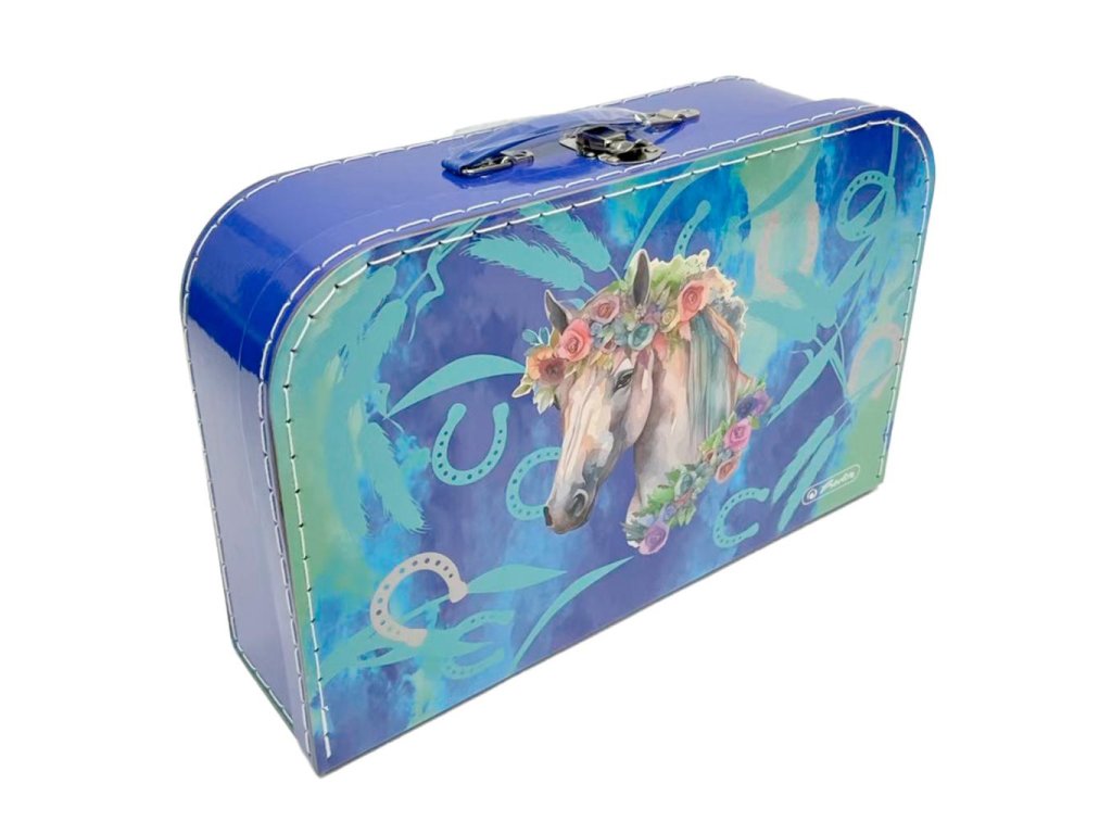Kufrík 35 cm Kôň, papierový kufrík na školské pomôcky, lesklý, s vnútornou grafikou, kovové zatváranieRozmery: 35 × 23 × 10 cm.