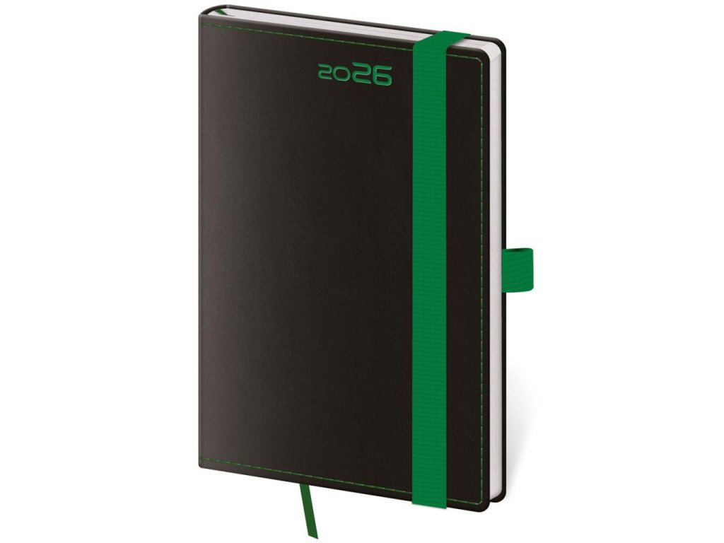 Diár BLACK GREEN týždenný vreckový A6 9x14cm 2026