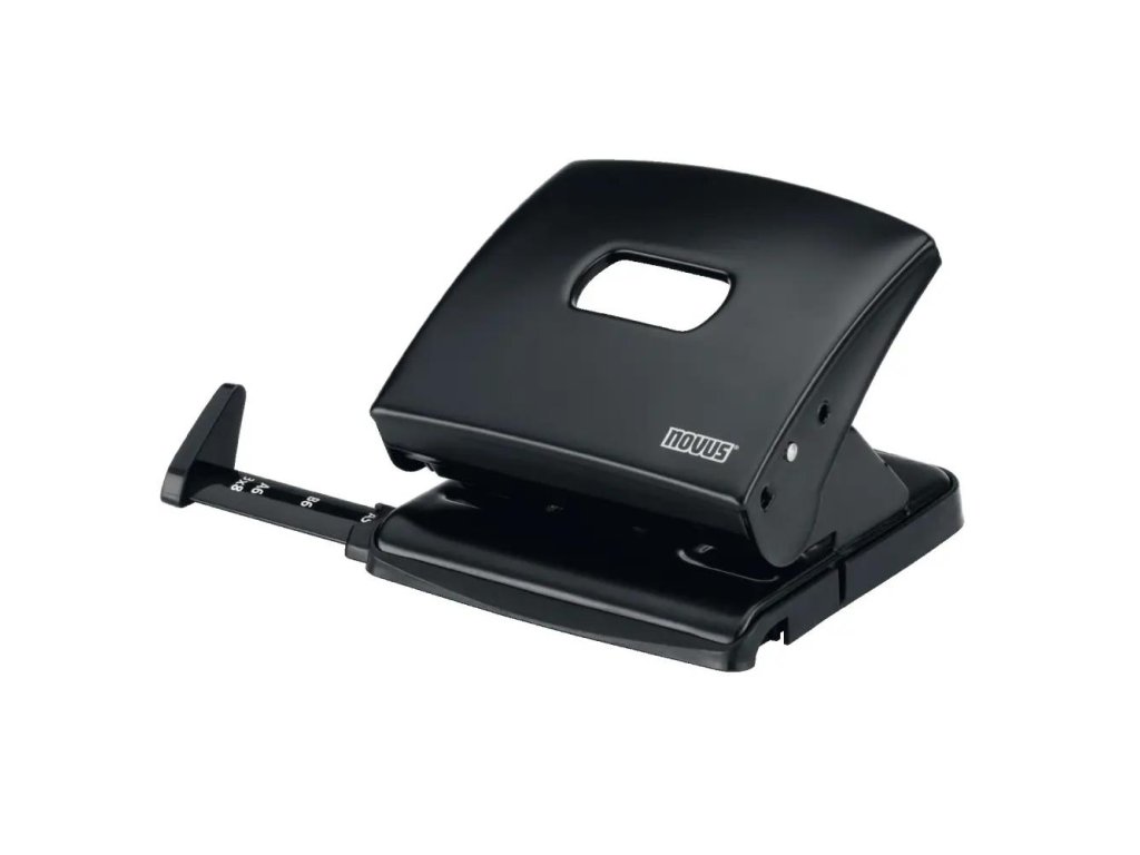 Celokovová kancelárska dierovačka s posuvným pravítkom a plastovým poťahom v dizajne zošívačky Novus C2 a C-STABIL. Rozpätie dier 8 cm. Hmotnosť 350 g. Záruka 10 rokov.Farba: čierna