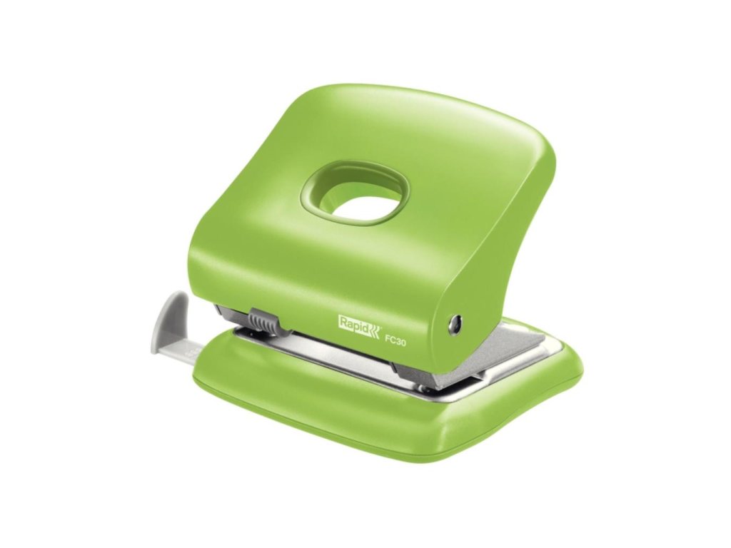 Výkonná odolná kovová dierovačka s ramenom a základňou z vystuženého plastu ABS. Vhodná na použitie doma, v škole aj v kancelárii. Predieruje až 30 listov papiera (80 gsm). Pevná kovová konštrukcia zaisťuje dokonalé výsledky dierovania. Rameno a základňa z vystuženého plastu ABS. Zásobník na odrezky v plastovej základni, jednoduché vyprázdňovanie. Záruka 5 rokov. Farba zelená.Dodatočné parametre