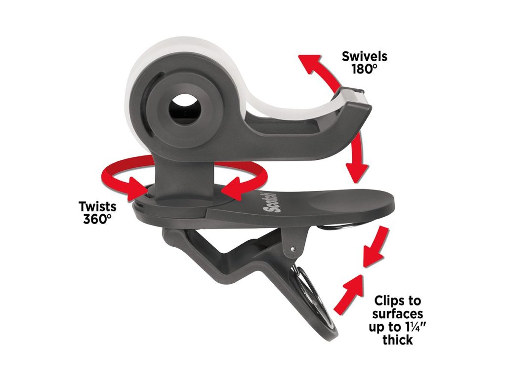 3M™ Scotch® Otočný zásobník C19 s páskou Scotch® Magic™ rozmerov 19 mm × 8,89 m. Horizontálna rotácia 360°, vertikálna rotácia 180°. Praktické využitie v kancelárii alebo doma, ľahké odtrhnutie pásky jednou rukou. Farba čierna.360° - horizontálna rotácia