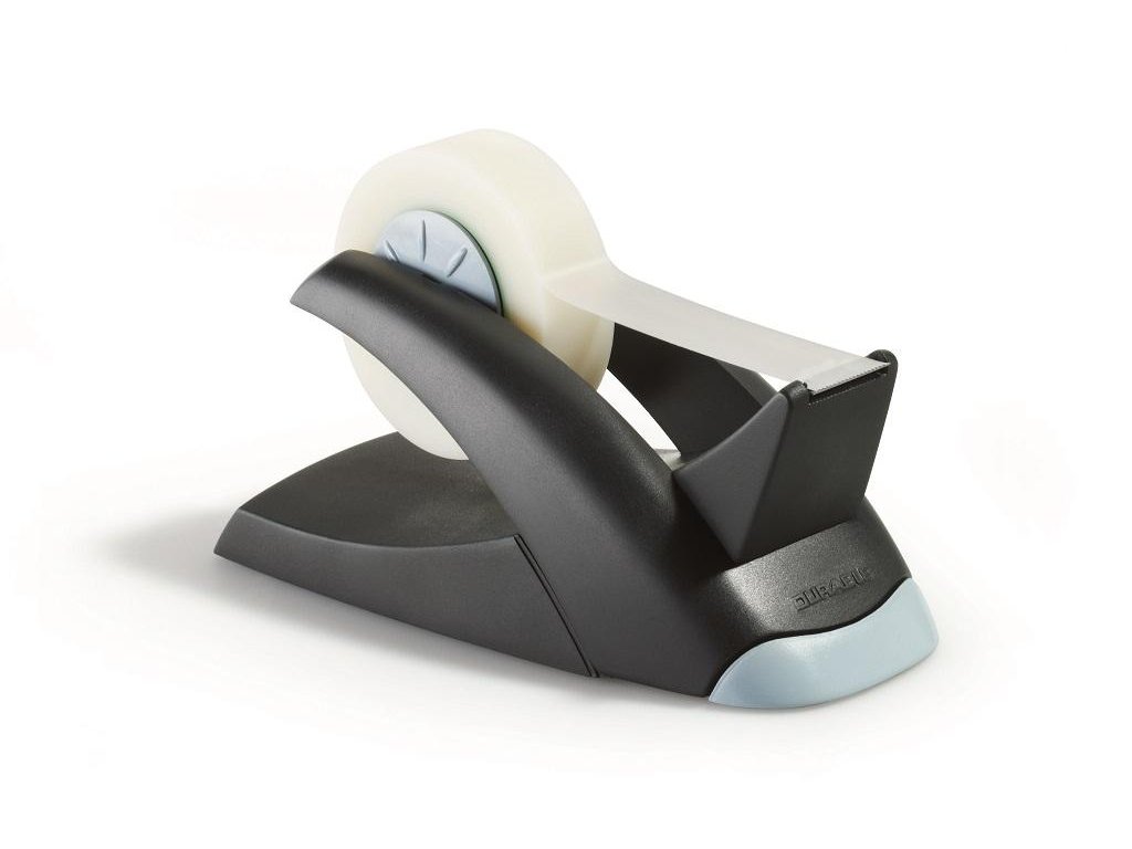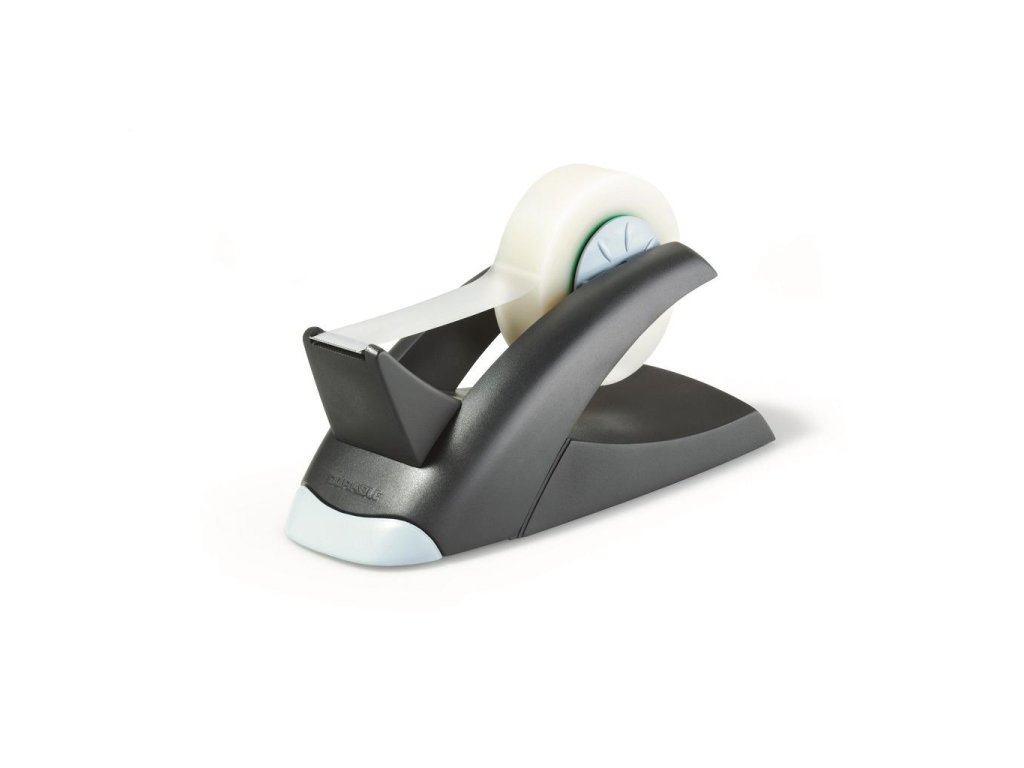 Vysoko kvalitný dispenzor v exkluzívnom prevedení v dizajne produktovej rady DURABLE VEGAS. Dodávaný s 19 mm popisovateľnou matnou adhezívnou páskou dĺžky 33 m. Použiteľný na všetky pásky šírky 19 mm s max. návinom 33 m. Protišmyková úprava. Rozmery (š×v×d) 75×75×150 mm.Farba: čierna/sivá