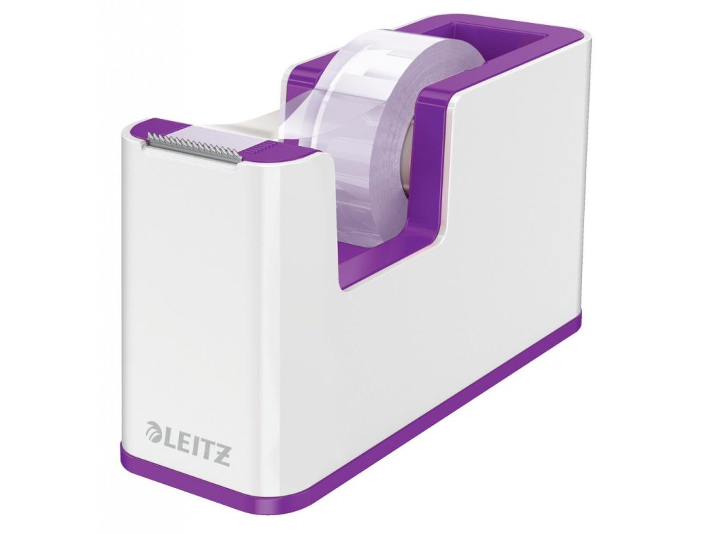Atraktívny dispenzor s lepiacou páskou v dvojfarebnom prevedení v metalických farbách Leitz WOW s lesklým povrchom. V praktickom dizajne na pohodlné ovládanie jednou rukou. Farba purpurová.Pre kotúčiky pások do veľkosti 19 mm × 33 mm.
