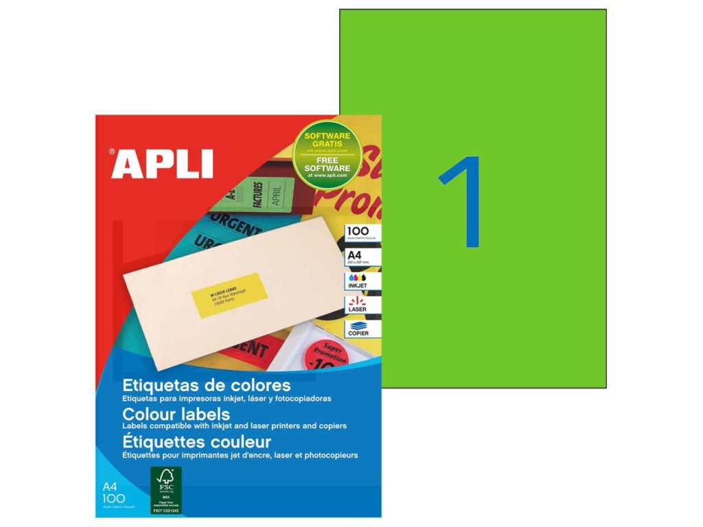 Etikety farebné 210x297mm APLI A4 100 hárkov fluo zelené
