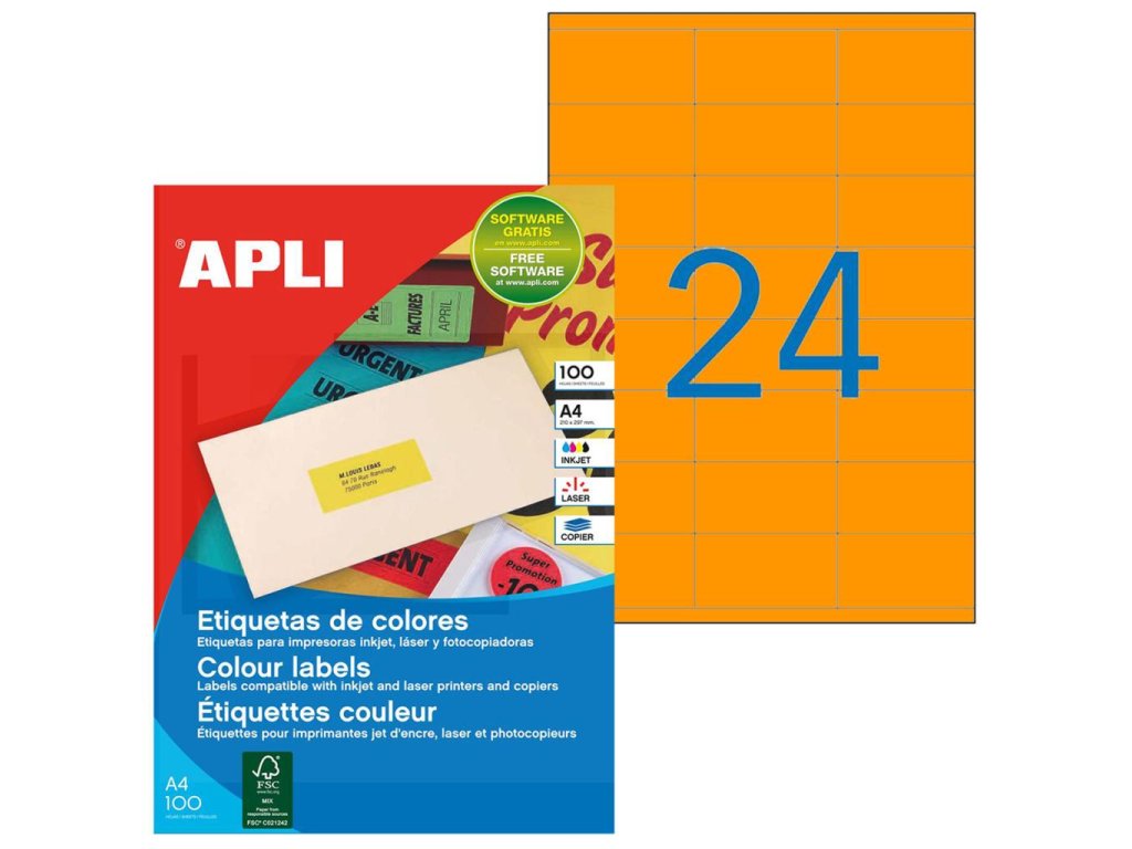 Etikety farebné 70x35mm APLI A4 100 hárkov fluo oranžové