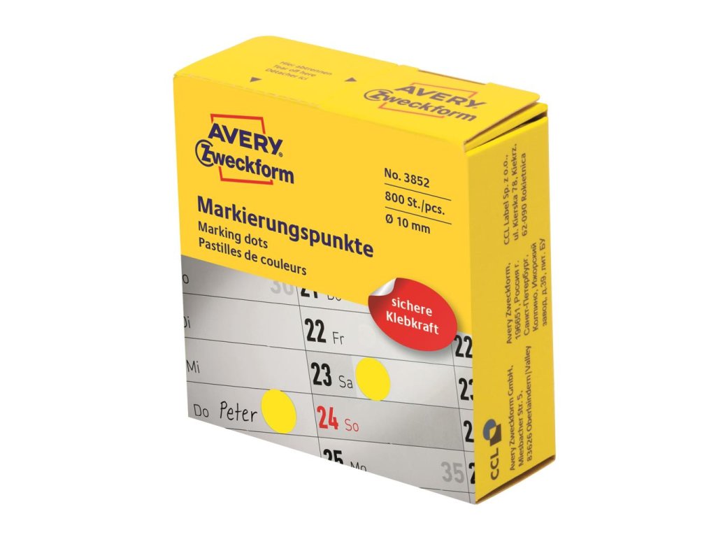 Etikety kruhové 10mm Avery žlté v dispenzore
