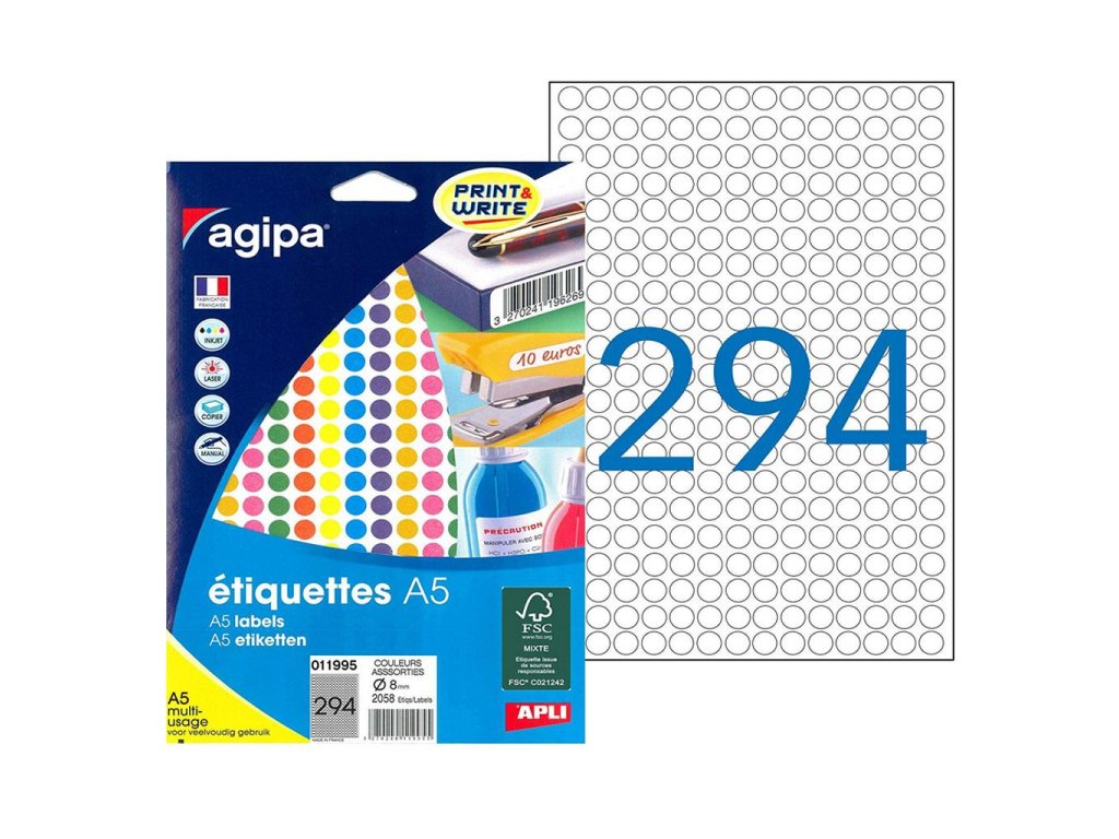 Etikety kruhové 8mm Agipa A5 mix 7 farieb