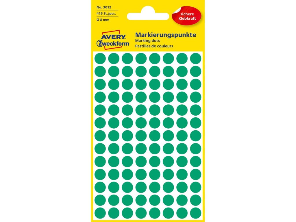 Kruhové etikety na ručný popis. Priemer 8 mm. Farba zelená. Etikety v balení : 416 kusov.Dodatočné parametre