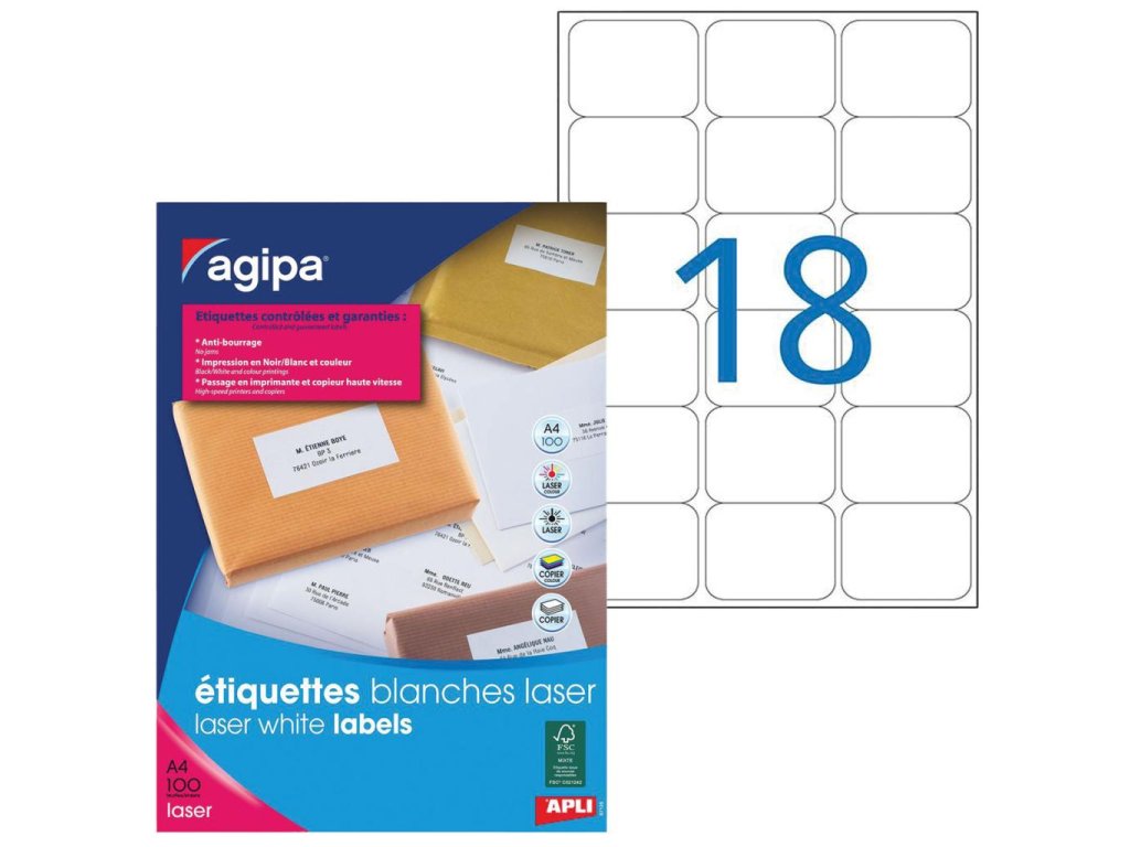 Etikety laser 63,5x46,6mm Agipa A4 100 hárkov