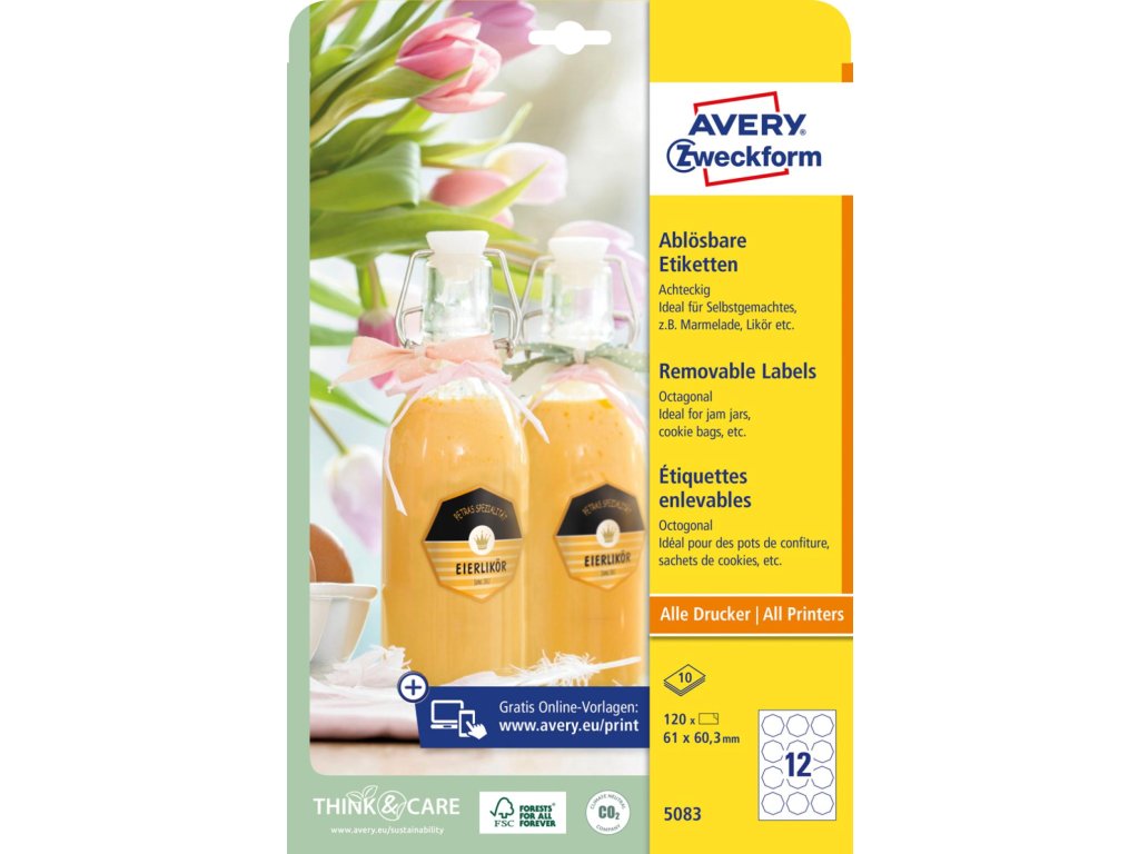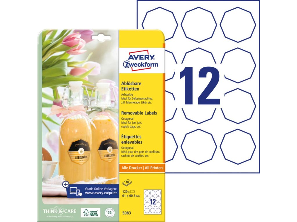 Etikety osemhranné 61x60,3mm Avery 10 hárkov biele