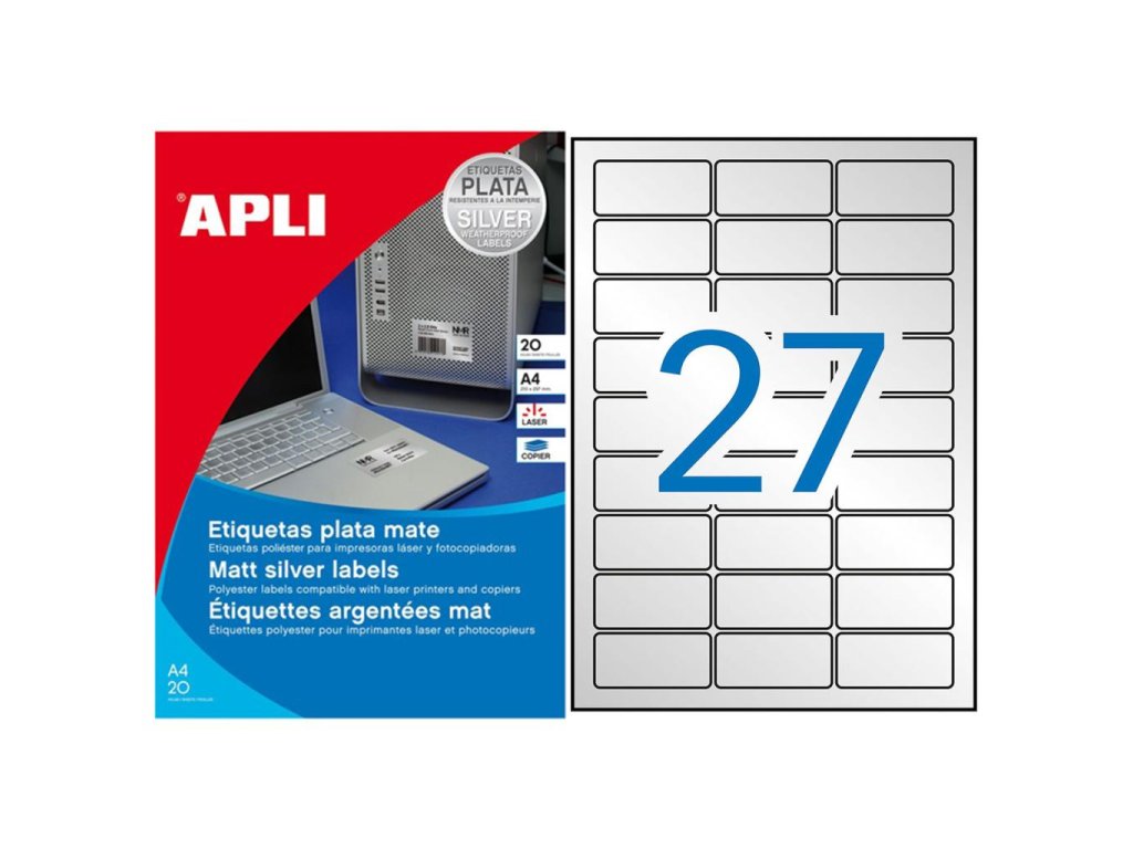 Etikety polyesterové 63,5x29,6mm APLI A4 20 hárkov strieborné
