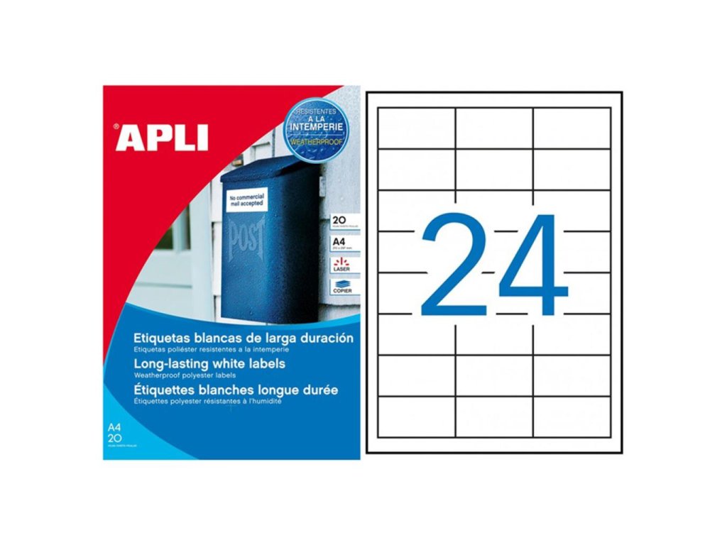 Etikety polyesterové 64,6x33,8mm APLI 20 hárkov