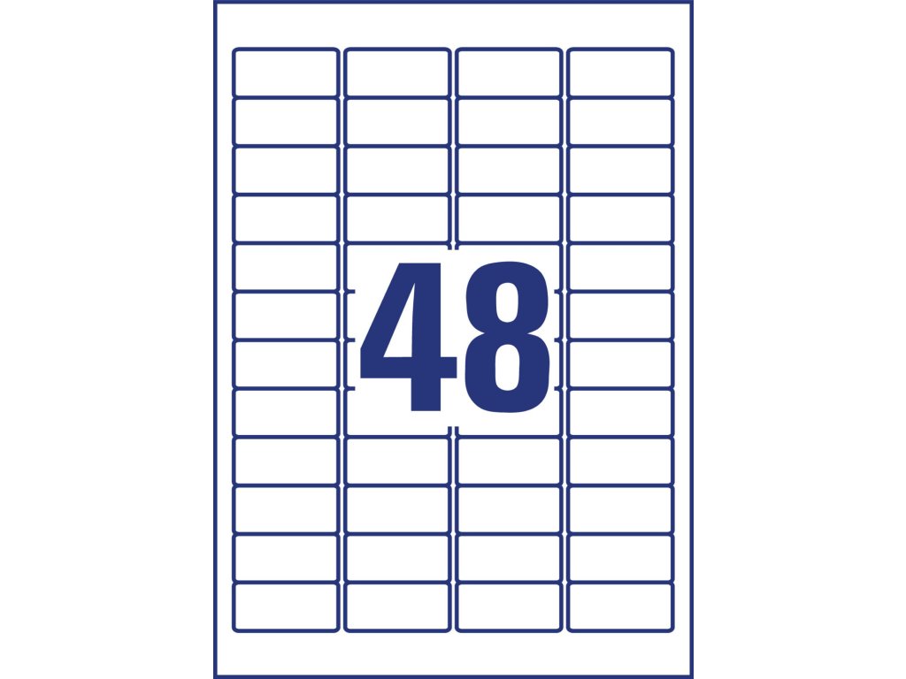 Veľmi odolné polyesterové etikety s nepermanentným lepidlom umožňujú odlepenie etikety bez zanechania stôp po lepidle. Sú odolné voči natrhnutiu, mastnote, nečistotám, UV žiareniu a teplotám od −20 ° do +80 °C a vhodné pre tlač v laserových tlačiarňach a kopírkach. Rozmery v mm : 45,7 × 21,2. Farba biela. Etikety na hárku 48 kusov. Balenie 20 hárkov.Dodatočné parametre