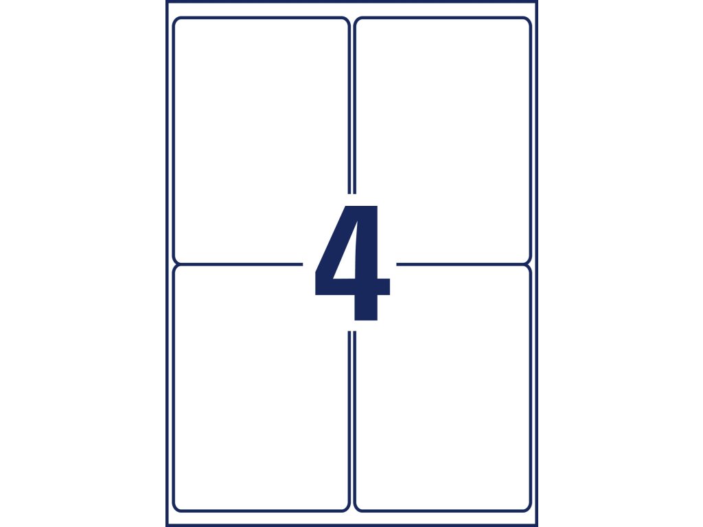 Veľmi odolné polyesterové etikety odolné voči oleju, prachu, špine, natrhnutiu, vode. Odolné voči teplotám od -20° do +80°C. Sú určené pre tlač v laserových, farebných laserových tlačiarňach a kopírkach a sú vhodné aj pre vonkajšie použitie.Rozmery v mm : 99,1 × 139. Farba biela. Etikety na hárku 4 kusov. Balenie 20 hárkov.