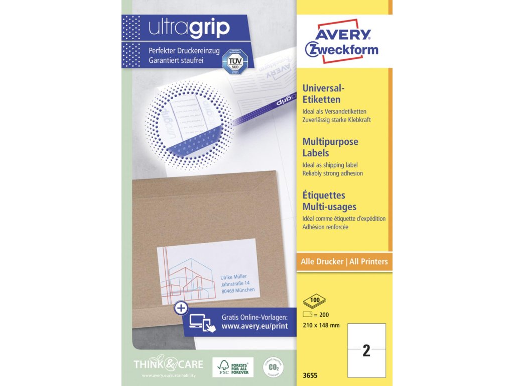 Biele univerzálne etikety vhodné na každodenné použitie v atramentových a laserových tlačiarňach a kopírovacích strojoch. Vďaka inovatívnej technológie ultragrip sa môžete spoľahnúť na bezchybné natiahnutie archu a tlač bez zasekávania. Bezpečnostný okraj QCT zabraňuje zanášaniu tlačiarne lepidlom. Pre laserové tlačiarne testované a certifi kované TÜV SÜD. Vysoká lepivosť na rôznych povrchoch. Ostrá tlač bez bez rozmazávania. Etikety sú vyrobené spôsobom šetrným k životnému prostrediu, majú certifi káciu FSC®, sú bielené bez použitia chlóru. Šablóny a softvér pre jednoduchú a rýchlu tlač etikiet k dispozícii zdarma. U niektorých rozmerov systém QuickPEEL™ na rýchlejšie odlepenie etikiet. Formát A4. Balenie 100 hárkov. Farba biela.Etikiet na hárku: 2