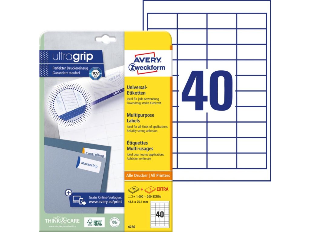 Etikety univerzálne 48,5x25,4mm Avery A4 25+5 hárkov