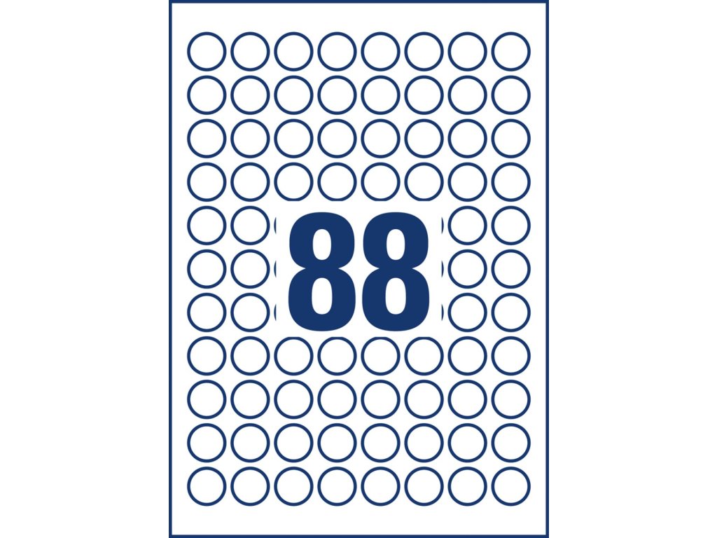 Etikety univerzálne kruhové 20mm Avery A4 10 hárkov