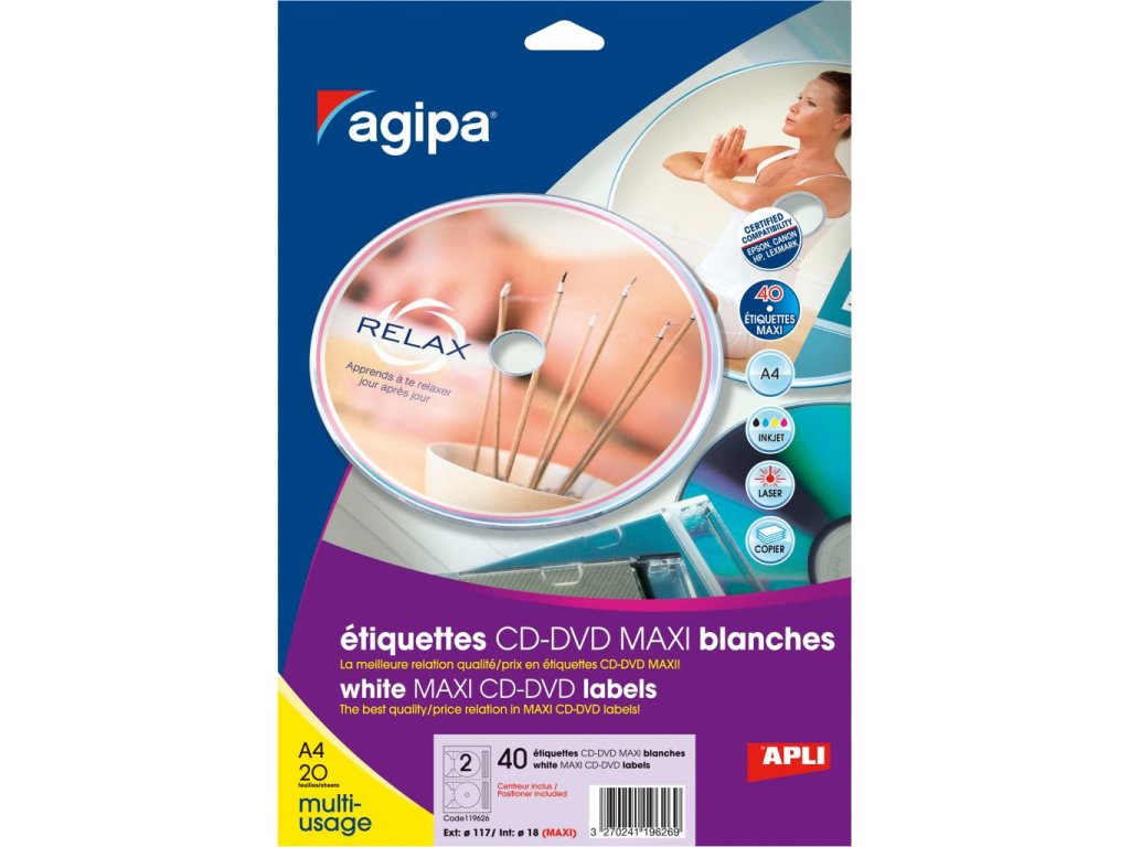 Etikety univerzálne na CD/DVD priemer 117,5 -17mm Agipa 20 hárkov