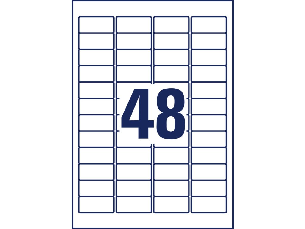Odnímateľné samolepiace etikety odlepiteľné a znovu prelepiteľné (na bežnom povrchu až 5×) bez toho, aby zanechali stopy lepidla. Sú vhodné pre všetky druhy tlačiarní a kopíriek. Využiteľné najmä na každodenné pracovné činnosti, ako napr. vytváranie popisov, cenoviek, označovanie výrobkov, majetku a pod. Rozmery v mm : 45,7 × 21,2. Farba biela. Etikety na hárku 48 ks. Balenie 25+5 hárkov.Dodatočné parametre