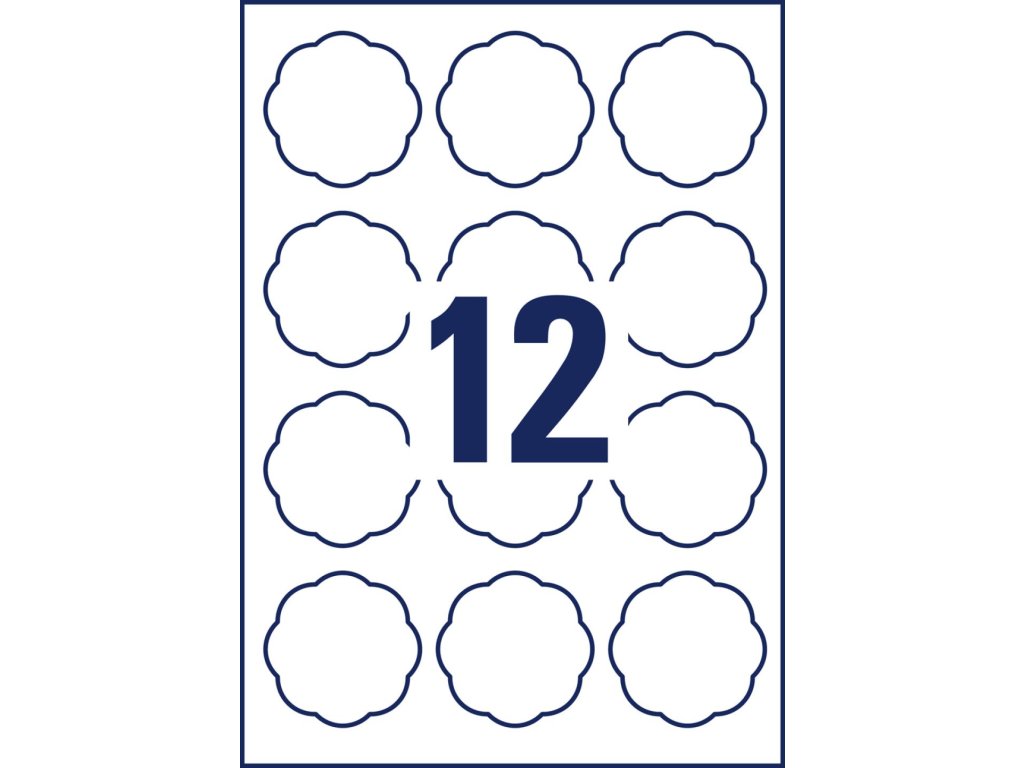 Etikety v tvare kvetu 60x59,5mm Avery 10 hárkov biele