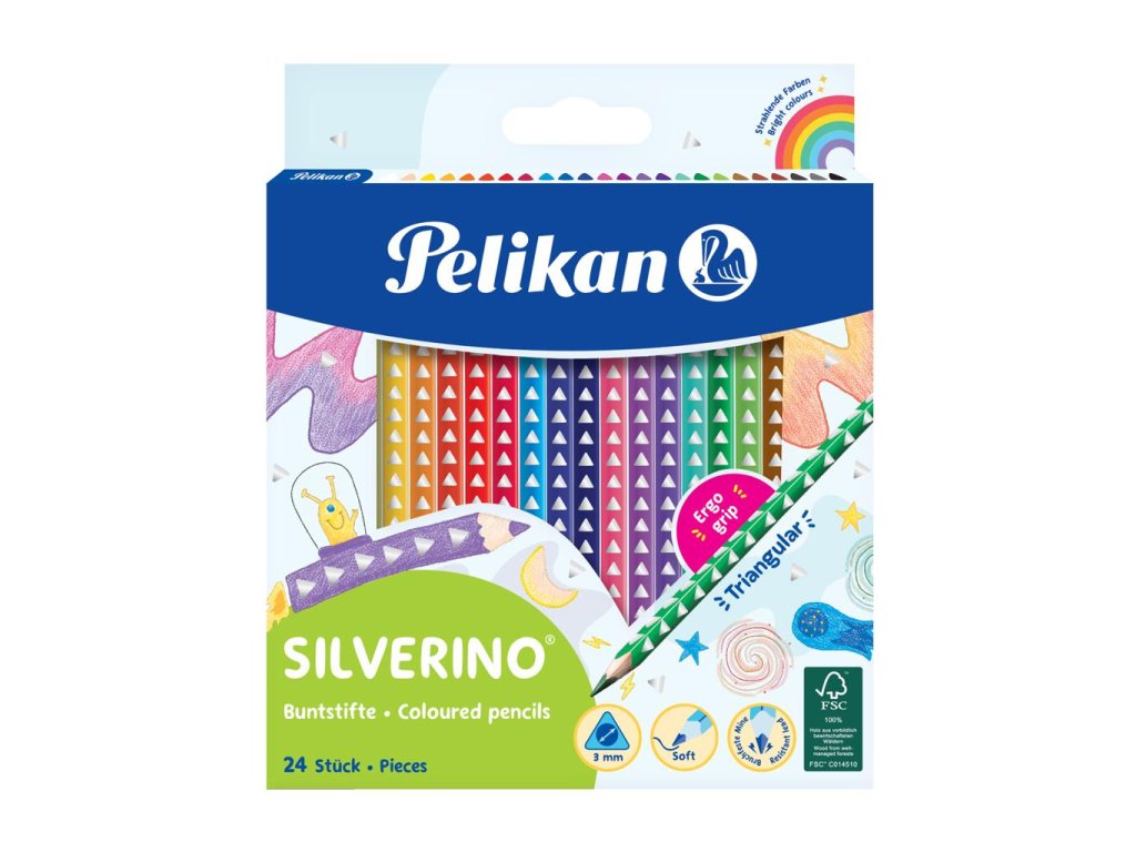 Farbičky Pelikan Silverino trojhranné tenké, sada 24 ks
