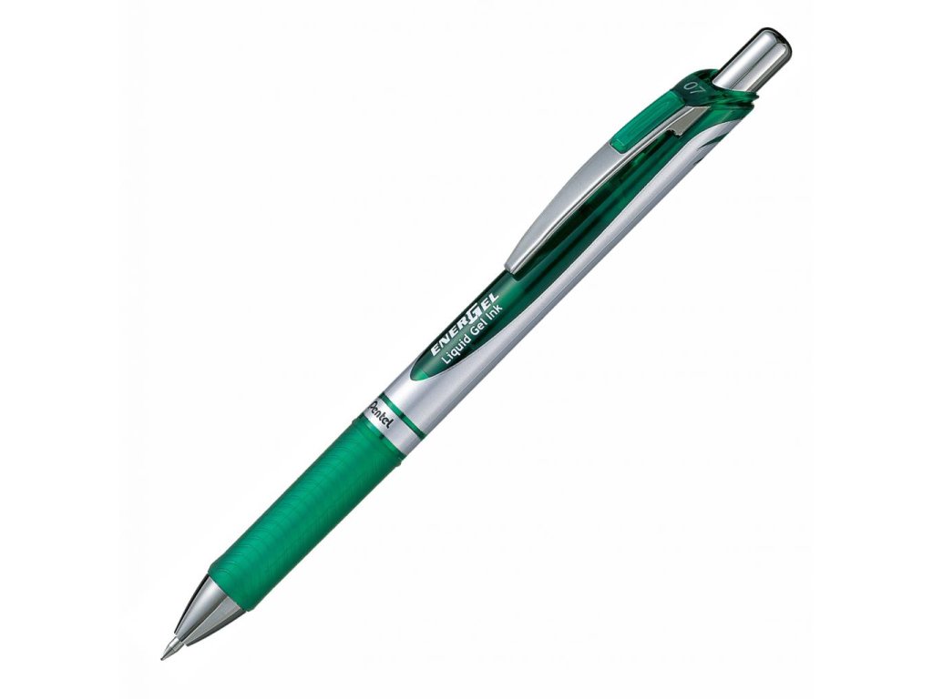 Najkvalitnejší roller s dokumentačným atramentom. Stláčací mechanizmus, telo s kovovými doplnkami, pogumovaný úchyt, rýchloschnúca gélová náplň. Väčšie balenie 12 ks v jednej farbe. Farba zelená.Pentel Energel 0,7 mm