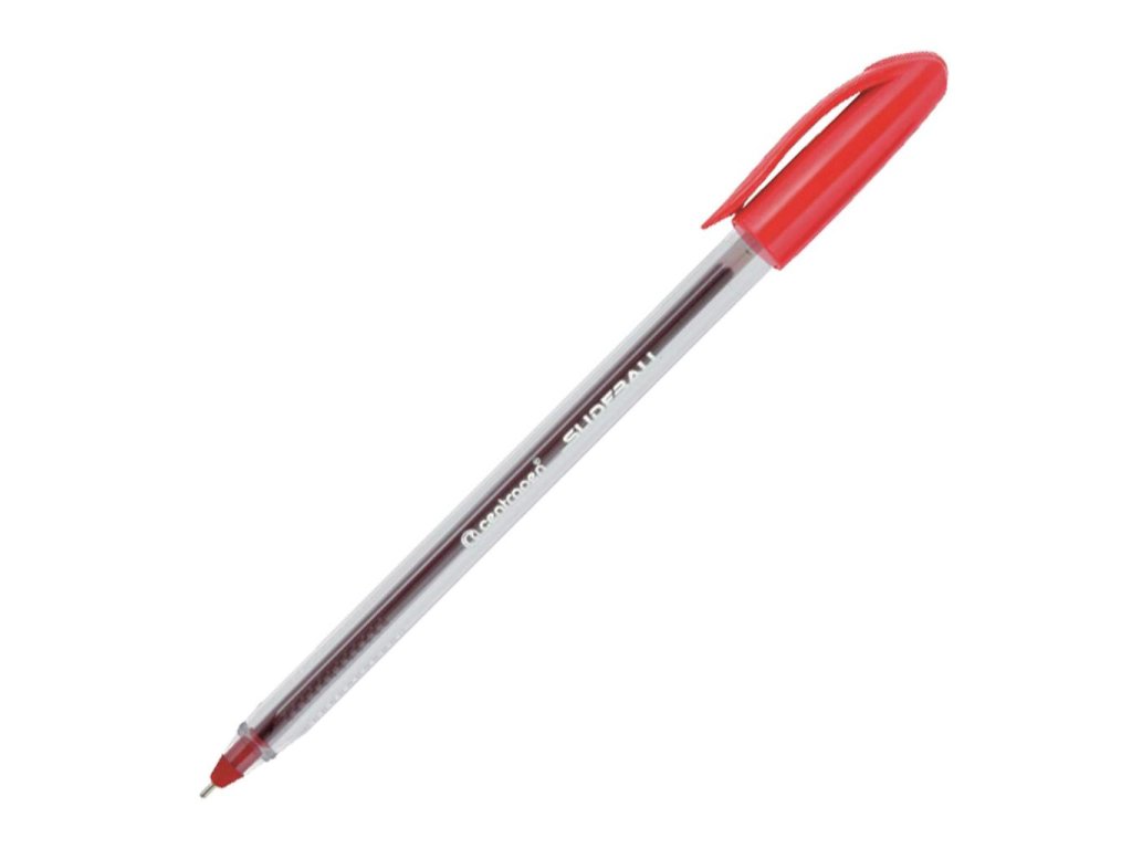 Guľôčkové pero v trojuholníkovom tvare s ergo úchytom s veľmi hladkým písaním. Priehľadné telo, nový nízko viskózny atrament v sýtych farbách. Ihlový hrot s guľôčkou, šírka stopy 0,3 mm. Väčšie balenie 12 ks.Farba náplne: červená