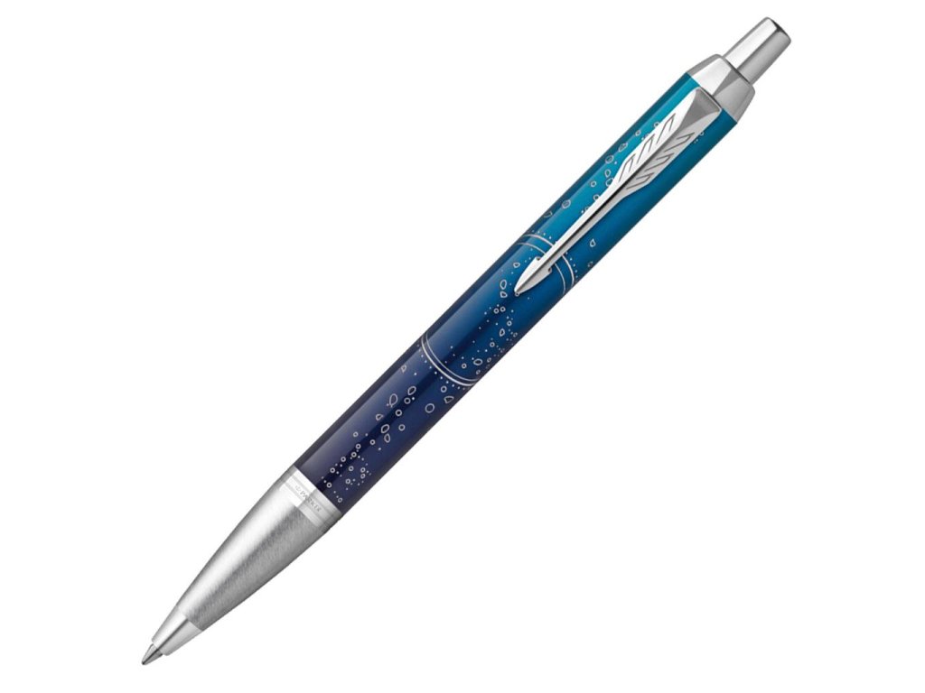Od svojho vzniku je Parker perom neohrozených prieskumníkov a prezieravých vodcov, ktorí boli dosť odvážni na to, aby spochybnili status quo a prekročili stanovené hranice, aby dosiahli svoje ciele. Parker oslavuje tento spôsob myslenia a privádza nás na epické dobrodružstvo na 3 najviac neprebádané miesta, ktoré človek pozná - hlboké more, ľadom pokryté územia a vesmír so svojou novou špeciálnou edíciou IM - The Last Frontier. IM Submerge je inšpirovaný obrovským, neprebádaným hlbokým morom. Len niekoľko neohrozených prieskumníkov podniklo náročnú cestu na morské dno, aby zlepšili naše chápanie týchto prostredí a umožnili nám ich zachovať pre budúce generácie.Guľôčkové pero - GP. Stláčací mechanizmus. Štandardná ponuka zahŕňa slabé a stredné hroty. Dvojkanálikový systém zásobovania hrotu atramentom. Prispôsobené výhradne na používanie atramentových bombičiek alebo konvertora