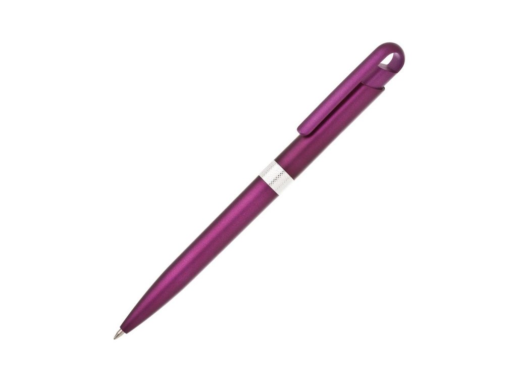 Plastové guľôčkové pero FIROL v metalických farbách. Uprostred pera je stieborný krúžok. Modrá náplň veľkoobjemová. Kolekcia DESIGN. Farba fialová.Dodatočné parametre