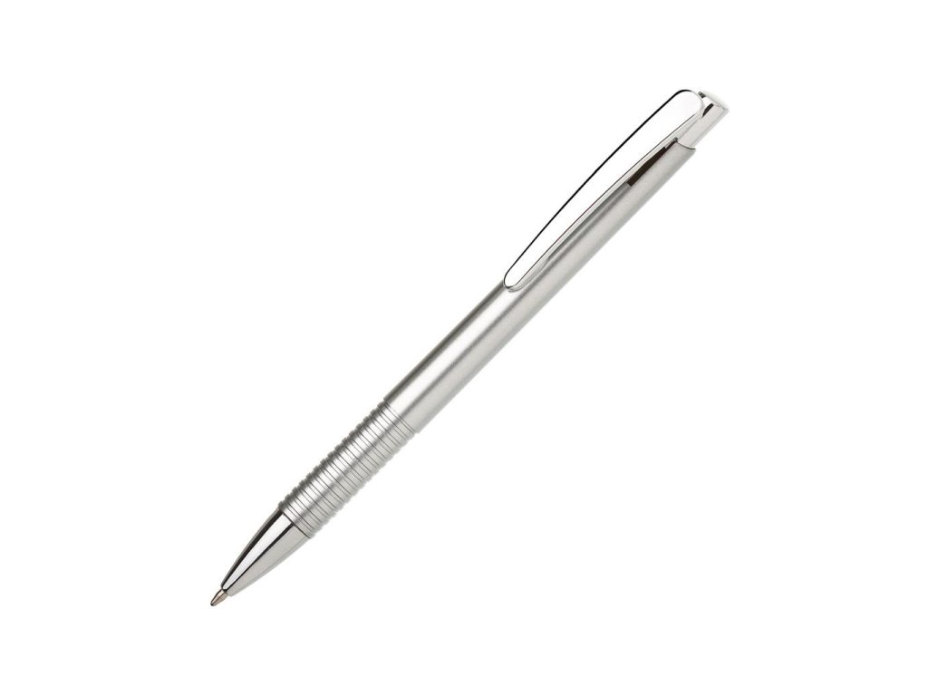 Guľôčkové pero plastové LASTI s vrúbkovaným úchopom a doplnkami v striebornej farbe. Modrá náplň X-20. Farba strieborná.Dodatočné parametre