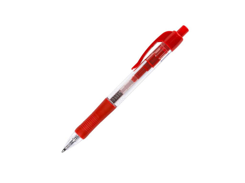 Klikacie guľôčkové pero s klipom a pogumovaným gripom pre lepšie držanie. Hrot 1 mm, šírka stopy 0,7 mm. Väčšie balenie 10 ks v jednej farbe.Farba náplne: červená
