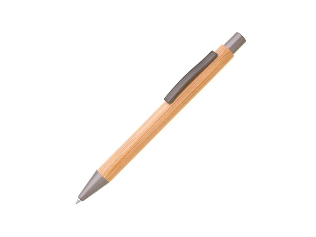 Guľôčkové pero s bambusovým rovným telom, matnými sivými doplnkami a kovovým klipom. Náplň modro píšuca veľkoobsahová.Dodatočné parametre