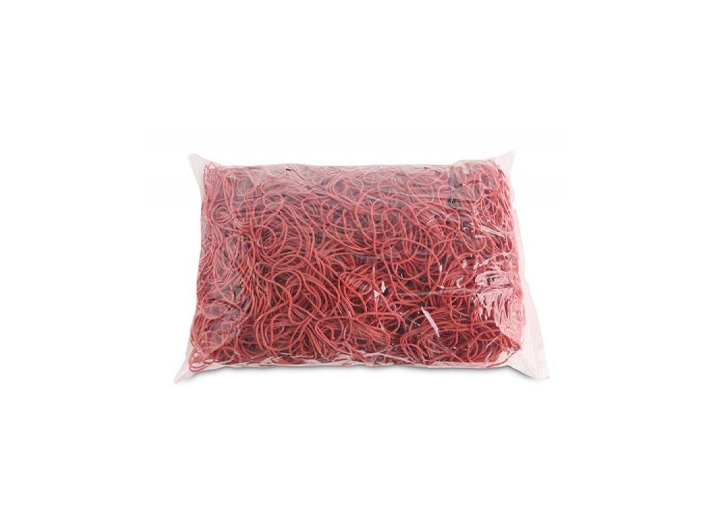 Odolné a pružné gumičky vyrobené z materiálu s prímesou gumy (60 %). Rozmery (hrúbka × šírka) 1,5 × 1,5 mm. Priemer 50 mm. Farba červená.Dodatočné parametre
