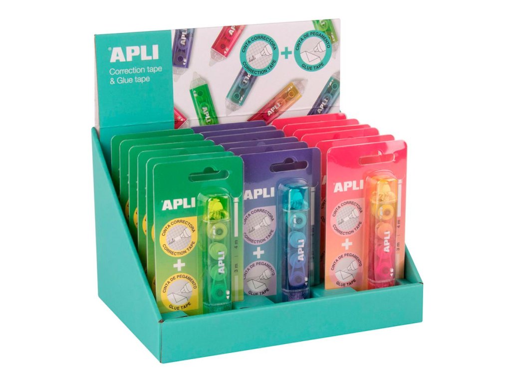 Korekčný roller a lepidlo APLI 2v1, mix farieb