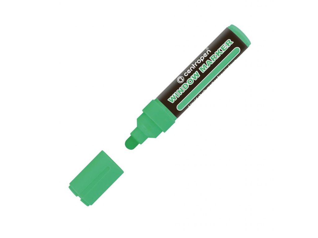 Špeciálny popisovač na neporézne povrchy (okná, zrkadlá, výklady). Tekutá krieda na vodnej báze so silnými krycími schopnosťami, svetlostála, stierateľná. Guľatý hrot, šírka stopy 3 - 4 mm. Väčšie balenie 5 ks v jednej farbe. Farba zelená.Dodatočné parametre