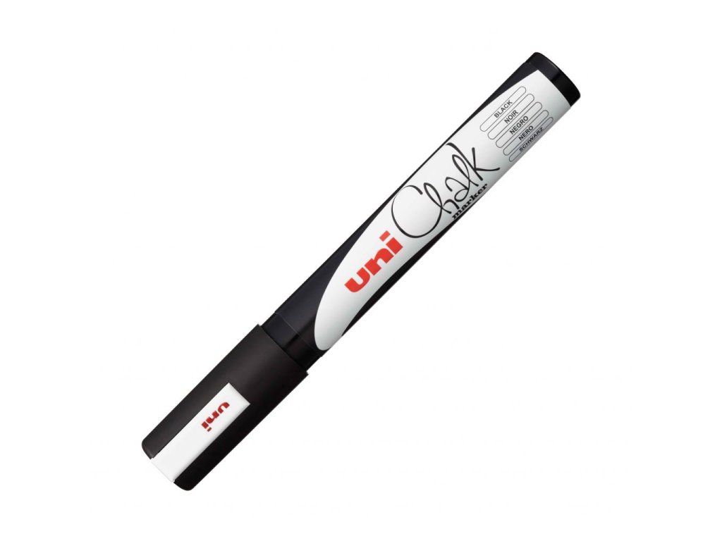 Kriedové popisovače s možnosťou použitia pre priemysel, dekoráciu, informačné tabule a hobby. Na čistých a odmastených neporéznych povrchoch text po zaschnutí odoláva vode a UV, ale je stierateľný vlhkou handričkou. Vhodné na okná, zrkadlá, kovové a plastové povrchy. Hrot guľatý, šírka stopy 1,8 - 2,5 mm. Farba čierna.Dodatočné parametre