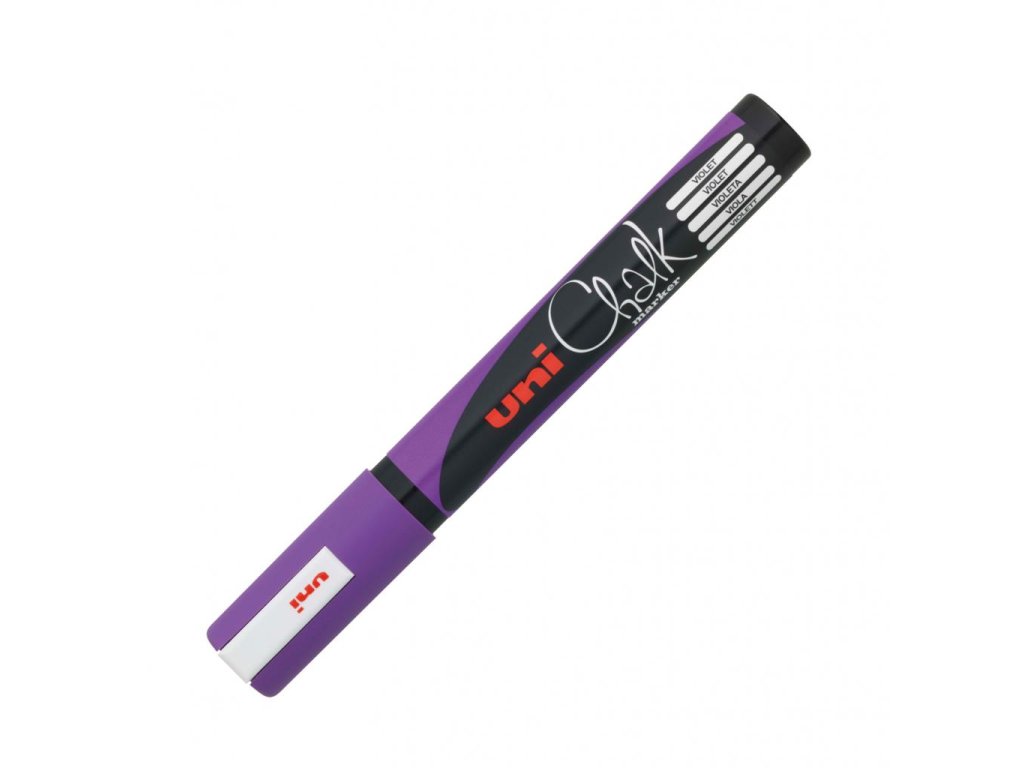 Kriedové popisovače s možnosťou použitia pre priemysel, dekoráciu, informačné tabule a hobby. Na čistých a odmastených neporéznych povrchoch text po zaschnutí odoláva vode a UV, ale je stierateľný vlhkou handričkou. Vhodné na okná, zrkadlá, kovové a plastové povrchy. Hrot guľatý, šírka stopy 1,8 - 2,5 mm. Farba fialová.Dodatočné parametre