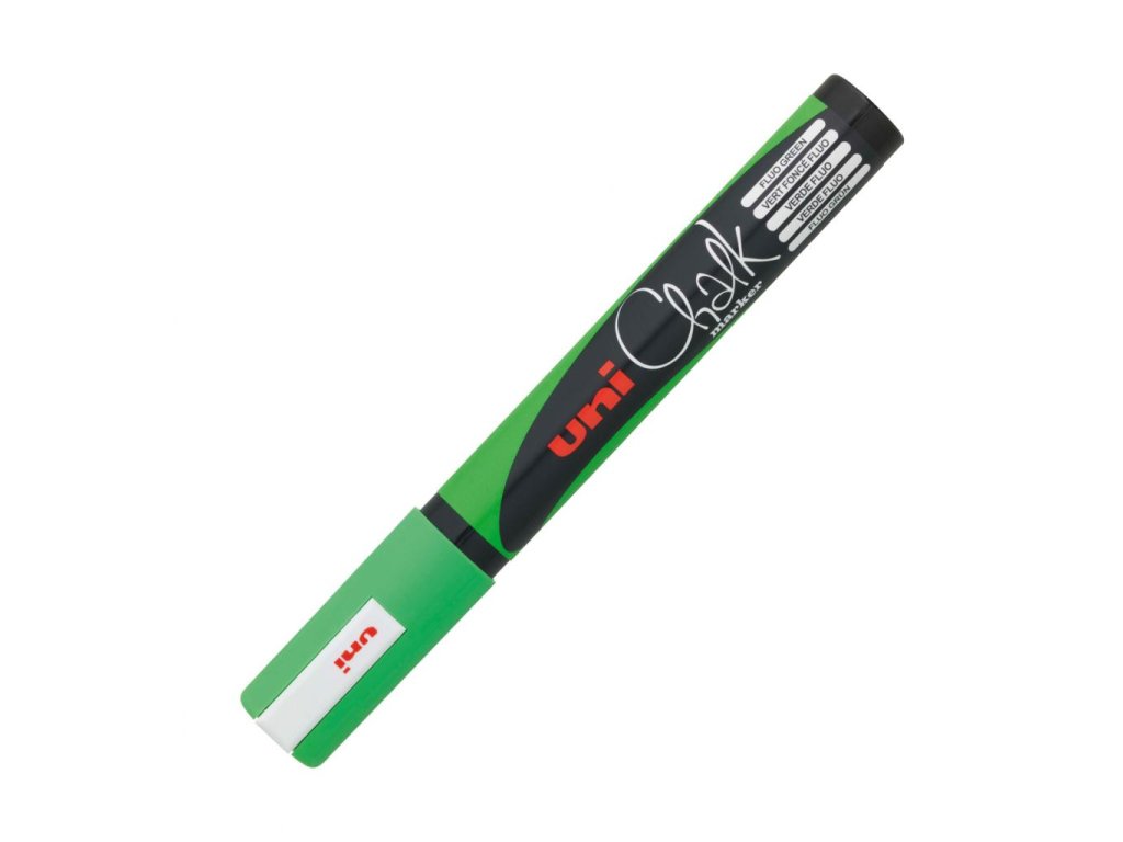 Kriedové popisovače s možnosťou použitia pre priemysel, dekoráciu, informačné tabule a hobby. Na čistých a odmastených neporéznych povrchoch text po zaschnutí odoláva vode a UV, ale je stierateľný vlhkou handričkou. Vhodné na okná, zrkadlá, kovové a plastové povrchy. Hrot guľatý, šírka stopy 1,8 - 2,5 mm. Farba neónovozelená.Dodatočné parametre