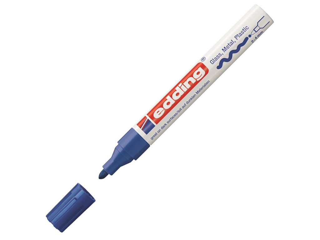 Lakový popisovač s hliníkovým obalom, vhodný pre vodovzdorné písanie, značkovanie a kreslenie na takmer všetky materiály. Nearomatický pigmentový atrament bez prísad toluénu/ xylénu rýchlo schne a vytvára úplne krycí lakovaný povrch, vhodný aj pre tmavé a priehľadné povrchy. Vysoká stálosť na svetle, nezmazateľnosť a odolnosť voči ohňu. Prietok atramentu riadený ventilom. Hrot okrúhly, šírka stopy 2 - 4 mm. Väčšie balenie 10 ks.Farba: modrá.