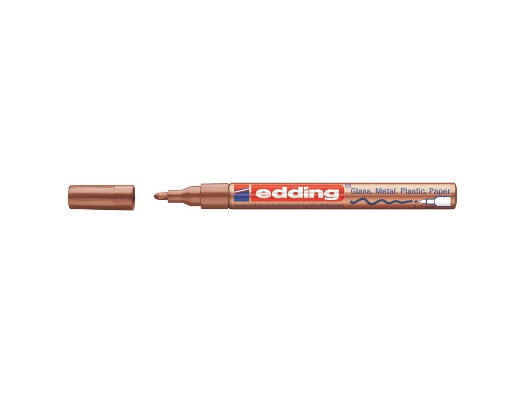 Lakový popisovač s hliníkovým obalom, vhodný pre vodovzdorné písanie, značkovanie a kreslenie na takmer všetky materiály. Hrot okrúhly, šírka stopy 1 - 2 mm. Väčšie balenie 10 ks.Farba: medená.